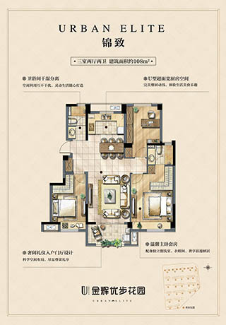 2016年金輝集團(tuán)“優(yōu)步系”推出的匠心力作,項目占地面積約7萬方,總建筑面積約17萬方,項目由9棟高層和14棟小高層組成,戶型面積約85-144㎡。萬福路旁,大運河畔金輝匠心之作,揚城榜樣居所 致敬城市生活家 。